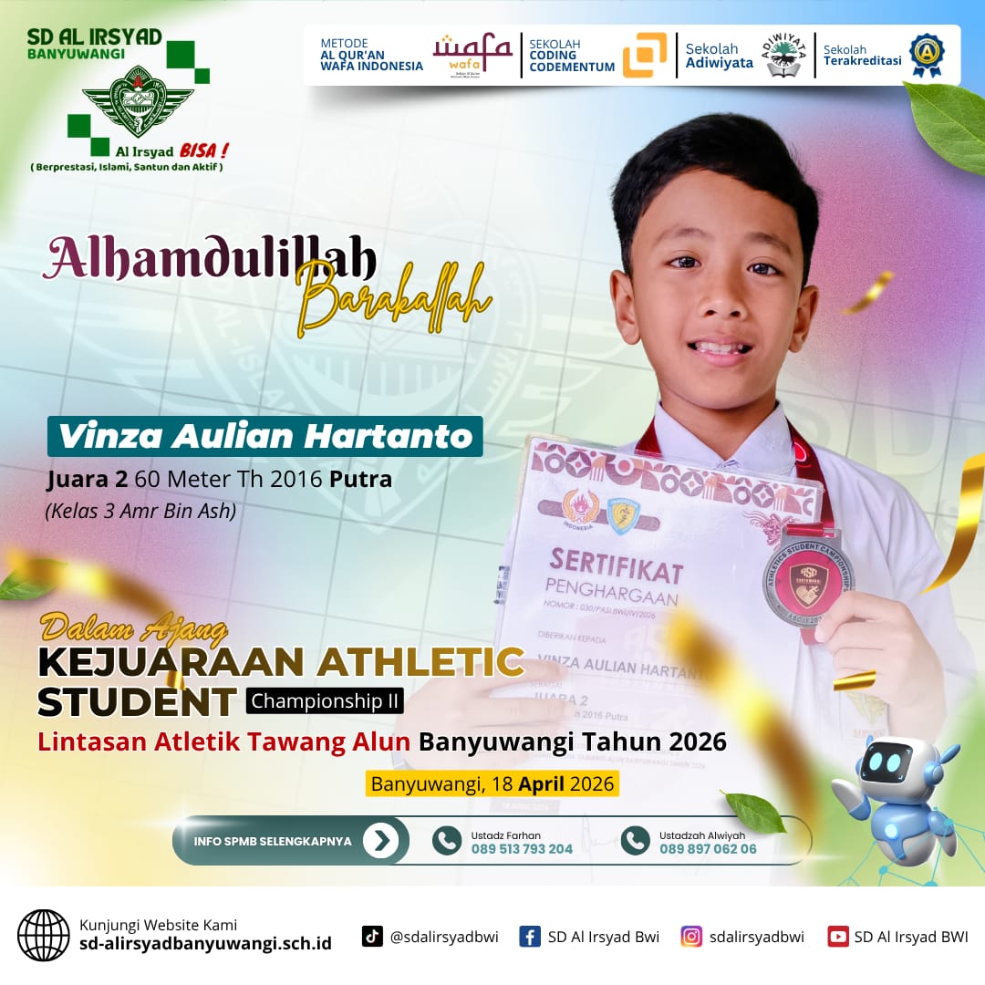 Selamat datang, Ahlan wa Sahlan, Welcome to SD Al Irsyad Al Islamiyyah Banyuwangi. Kami merasa sangat bangga mendapatkan perhatian dan kepercayaan dari Aba Umma sekalian. Kami akan berupaya untuk dapat menjalankan amanah ini dengan baik.