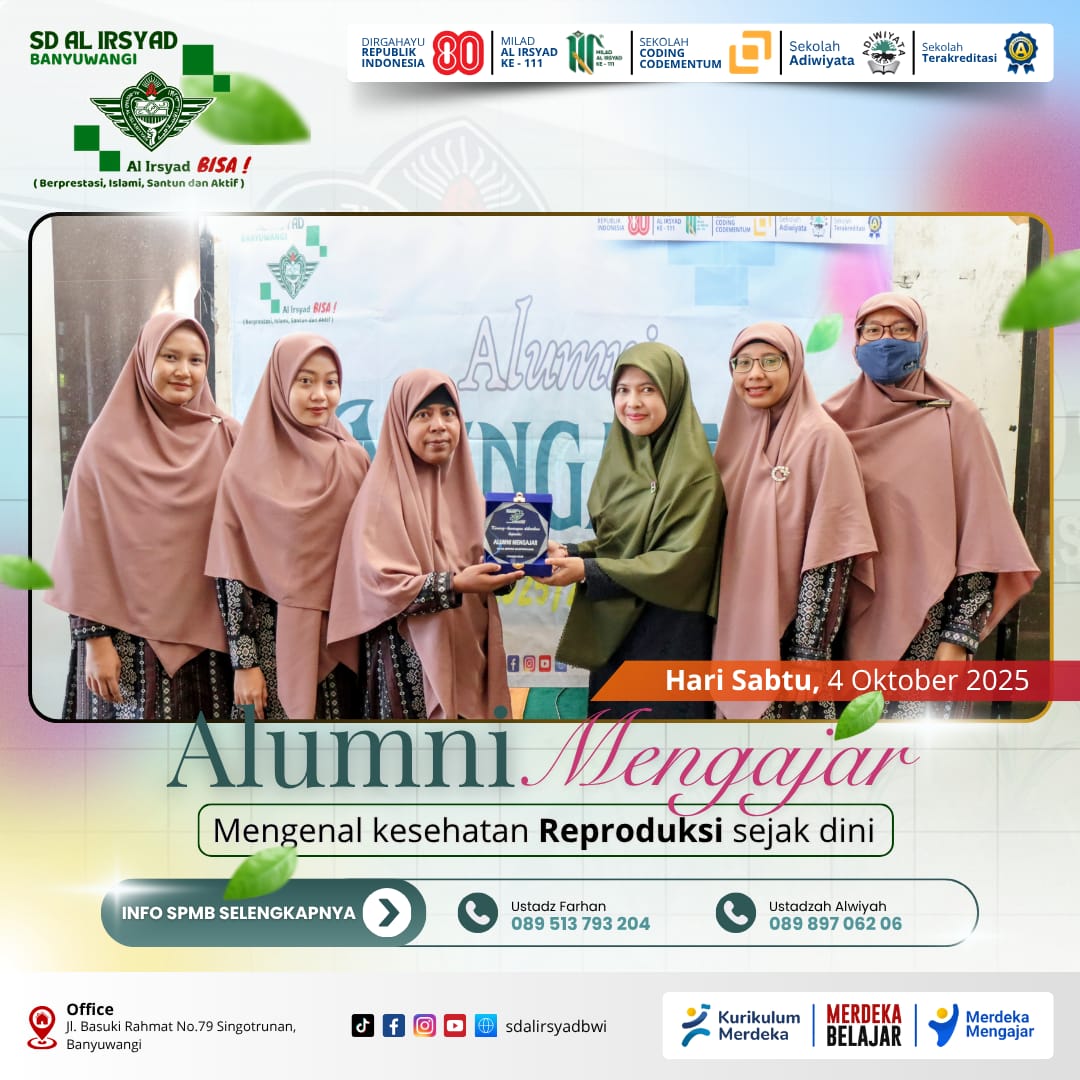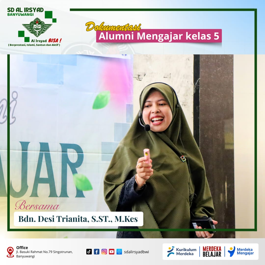 Sabtu, 4 Oktober 2025 SD Al Irsyad Banyuwangi kedatangan sosok inspiratif — Bidan Desy Trianita, S.ST., M.Kes, alumni tahun 1998, Dosen Stikes Banyuwangi sekaligus bunda dari ananda Averoes Rasyid Faqih (kelas 5B).