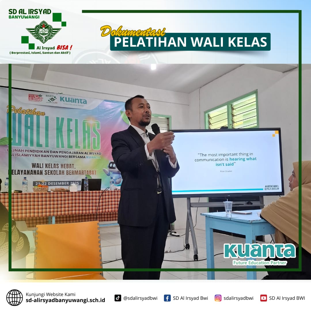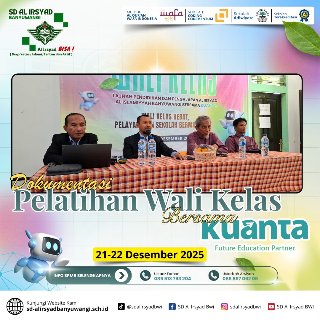 Lajnah Pendidikan Al Irsyad Banyuwangi bekerja sama dengan Kuanta menyelenggarakan Pelatihan Wali Kelas pada Ahad–Senin, 21–22 Desember 2025. Pelatihan ini mengusung tema “Menuju Wali Kelas Hebat, Pelayanan Sekolah Bermartabat.”