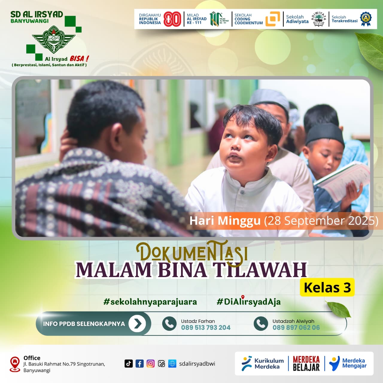 Malam Bina Tilawah dan Tahfidz (Mabit) merupakan program unggulan SD Al Irsyad Banyuwangi yang berfokus pada peningkatan kemampuan menghafal Al-Qur’an. Program ini menjadi momen yang sangat dinantikan oleh para siswa, termasuk kelas 3 yang baru saja mengikuti Mabit perdana.