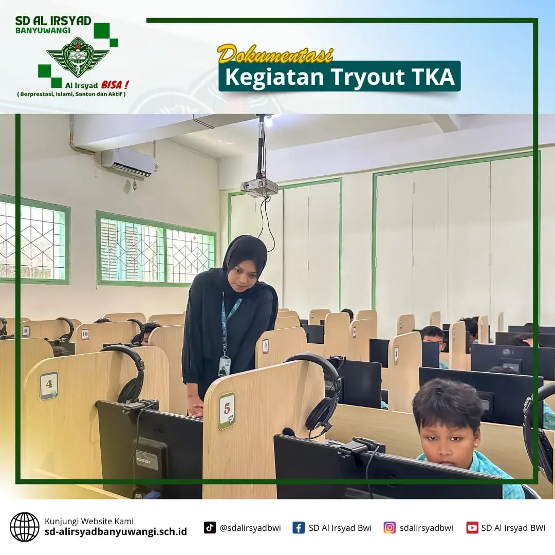 Dalam rangka pelaksanaan Program Tes Kemampuan Akademik (TKA), SD Al Irsyad Banyuwangi bekerja sama dengan Ruang Guru mengadakan kegiatan try out TKA bagi siswa kelas VI.