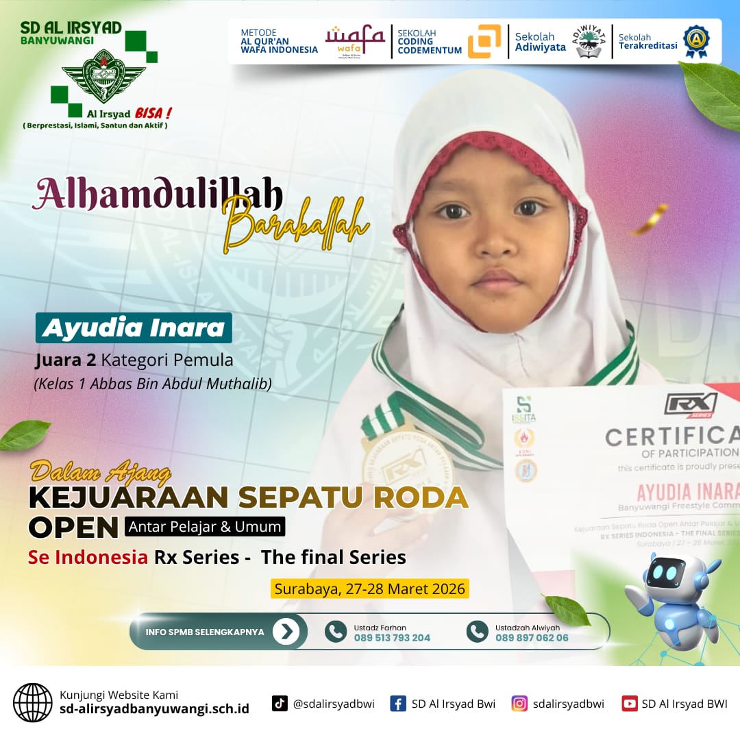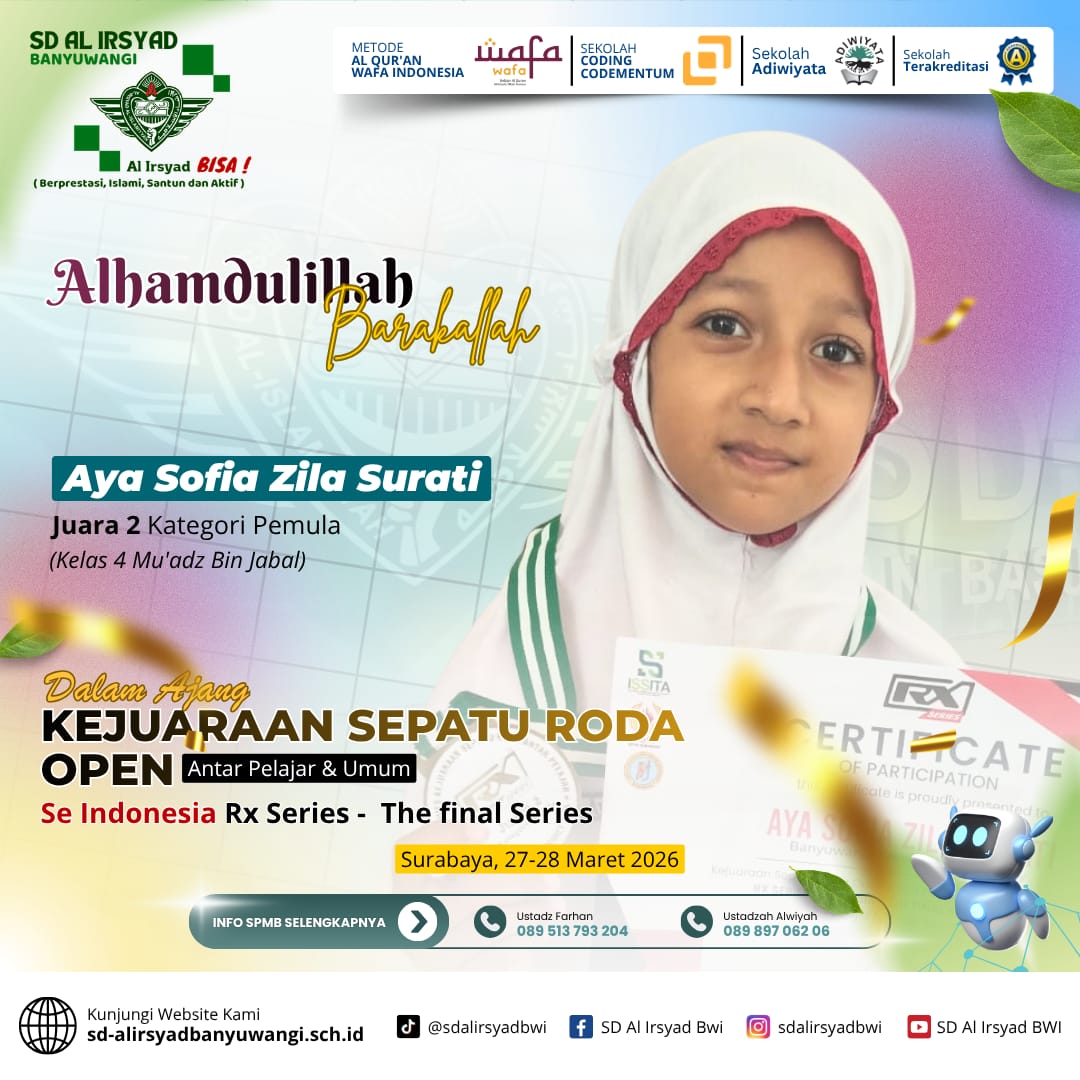 Prestasi ini sekaligus memperkuat peran SD Al Irsyad Banyuwangi sebagai lembaga pendidikan yang tidak hanya berfokus pada pembelajaran akademik, tetapi juga pembinaan karakter dan pengembangan potensi siswa secara menyeluruh.