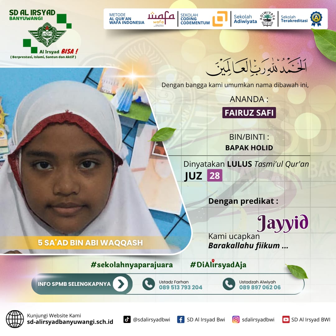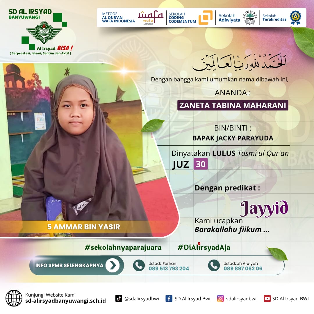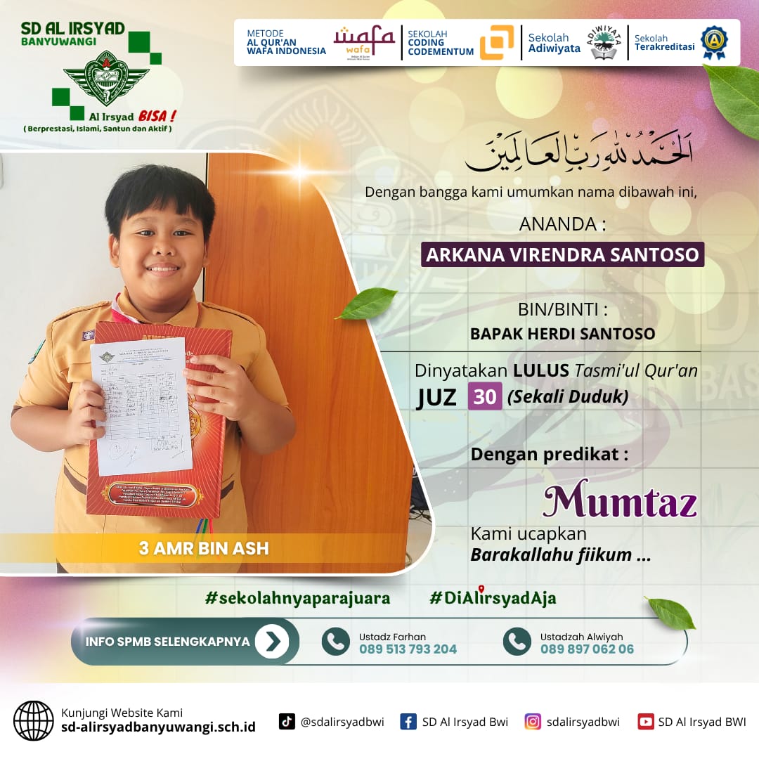Bagi Ayah Bunda yang menginginkan pendidikan terbaik berbasis Al-Qur’an, SD Al Irsyad Banyuwangi menghadirkan: